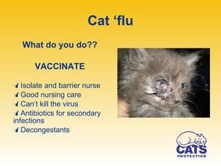 Secondary bacterial infections are also common eg Staph Strep Pasteurella. This bacterium can be a cause of upper respiratory disease in cats but is mainly a problem where cats are kept together in large groups such as rescue shelters and some breeding households. Cat Diseases pathology.